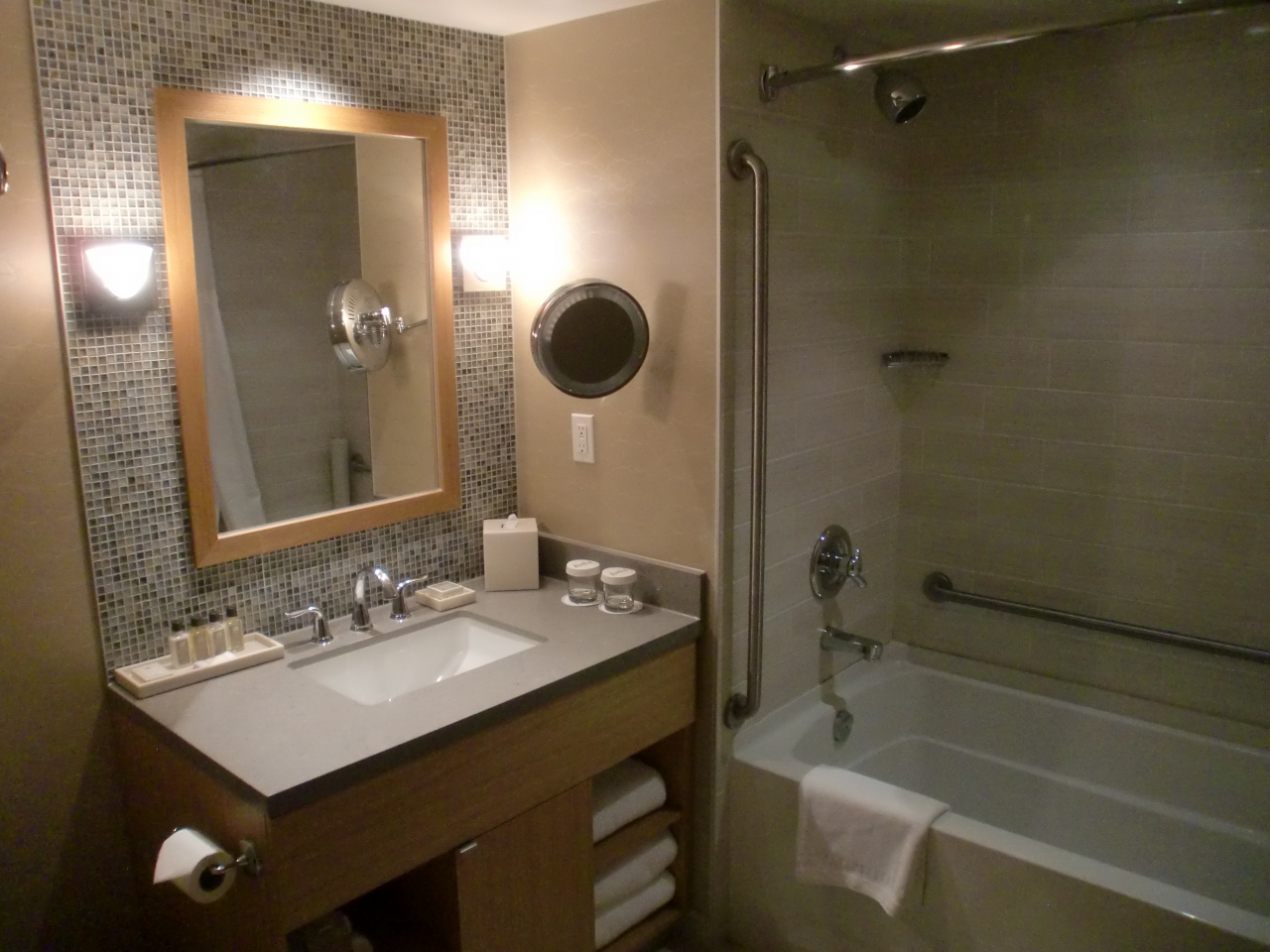 チェックインすると親切に日本語の部屋の使い方のぺら紙をくれました。電気は、ドア脇のスリットにカードキーを挿さないとONになりませんとか、セーフティーボックスは、部屋のカードーキーで開閉できますとか。さて、「シャワーとお風呂の切り替えは、お湯が出ている状態で蛇口を引き下げます。」とあるのですが、これが判らない。ちょっと悪戦苦闘して、蛇口の先端のお湯が出ている所のリングを下に引っ張ると言う事が判明、事なきを得ました。ホテルとして普通です。辺鄙な所にある分、価格が安いんだと思えば快適。