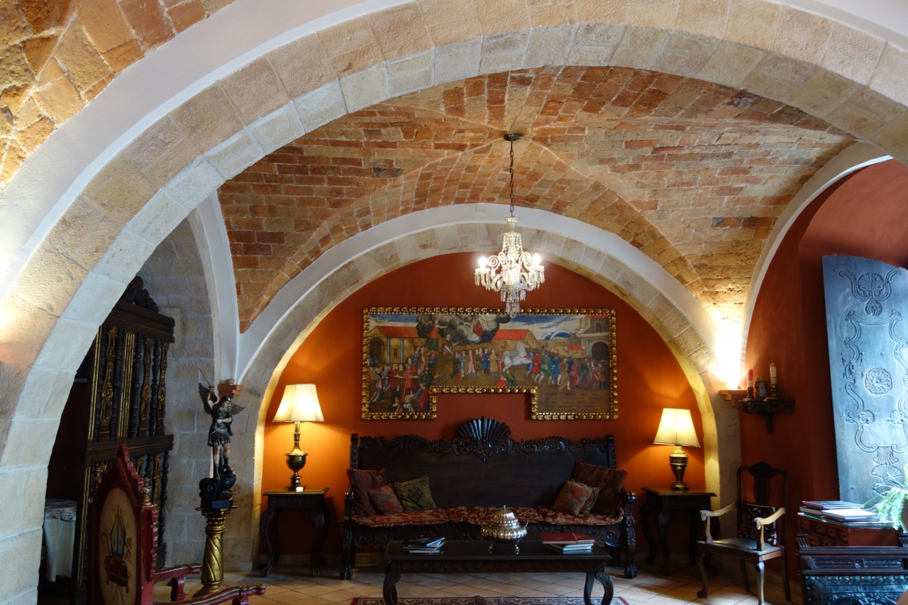 エントランスは狭いですが家具が素敵でした。少し変わった構造をしていますが、いくつかある中庭ごとに壁の色が変えられているのでわかりやすいです。屋上からの景色が良かったです。スクレの中心部にあるので広場や買い物に行くにも便利でした。