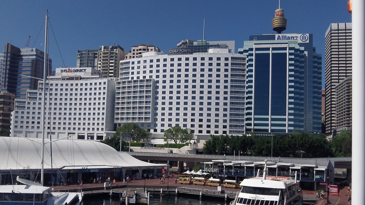 ホテルはダーリング・ハーバーが目の前でハーバー・ブリッジ、オペラ・ハウスは徒歩でも20~25分で行ける、シドニー・タワー周辺へも徒歩10分で行ける立地の良い場所で、部屋はシティー側とハーバービュー側では全然眺めが違うので是非ハーバービューお薦め!