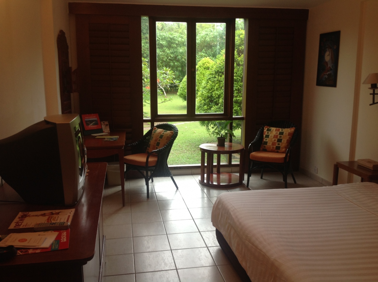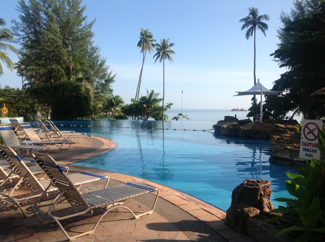 シンガポールのついでにビンタン島に行った際に1泊しました。フェリー乗り場からバスで揺られる事20分位だったと思います。ホテルの周りは、綺麗な海に椰子の木や白い砂浜と南国気分に浸れる事間違いないです。施設内で象に乗れたり馬に乗れたり飽きる事は無いと思います。ビーチもまずまず綺麗ですが魚が沢山泳いでいる訳では有りません。ビーチと繋がるプールも綺麗です。プール内にお酒の飲める場所が有ったりします。