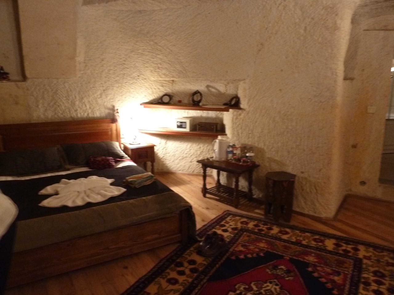 割に広い部屋でした。窓が大きく日当たりが良く,奥の半分くらいから洞窟の中のようです。ユルギュップの展望台の隣にあるので,屋上の先の岩山からの景色はよく,朝は熱気球がたくさん飛んでいるのが見えます。ジェットバス付きですが,洞窟の砂がバスタブに落ちてしまいます。