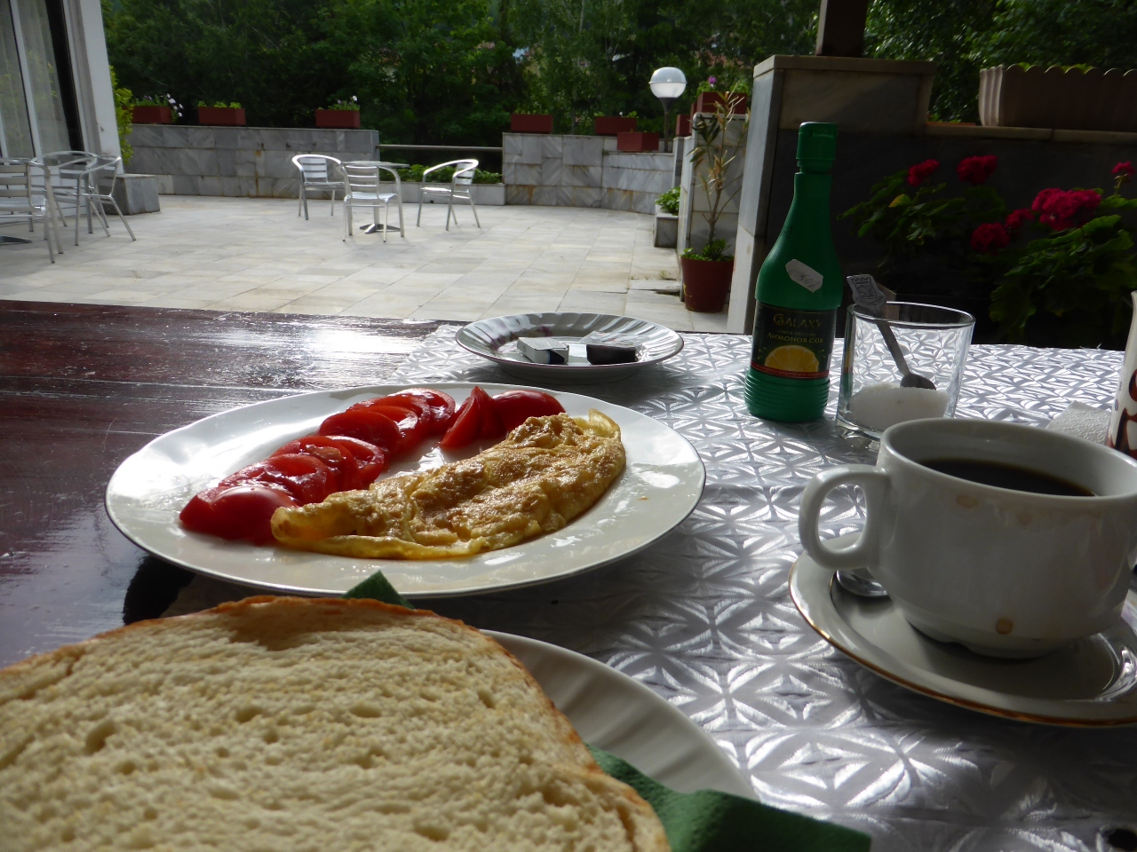 朝食は、なぜか外で・・・レストランは、閉鎖中でした。