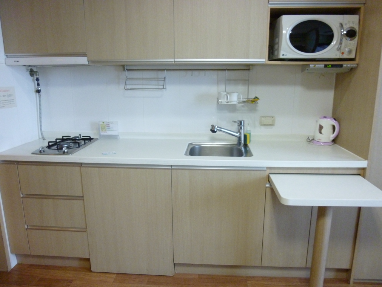 スーツケースも2人で広げられますし、お部屋のキッチンと洗面所の2か所水が出るところがあるのは非常に便利です。