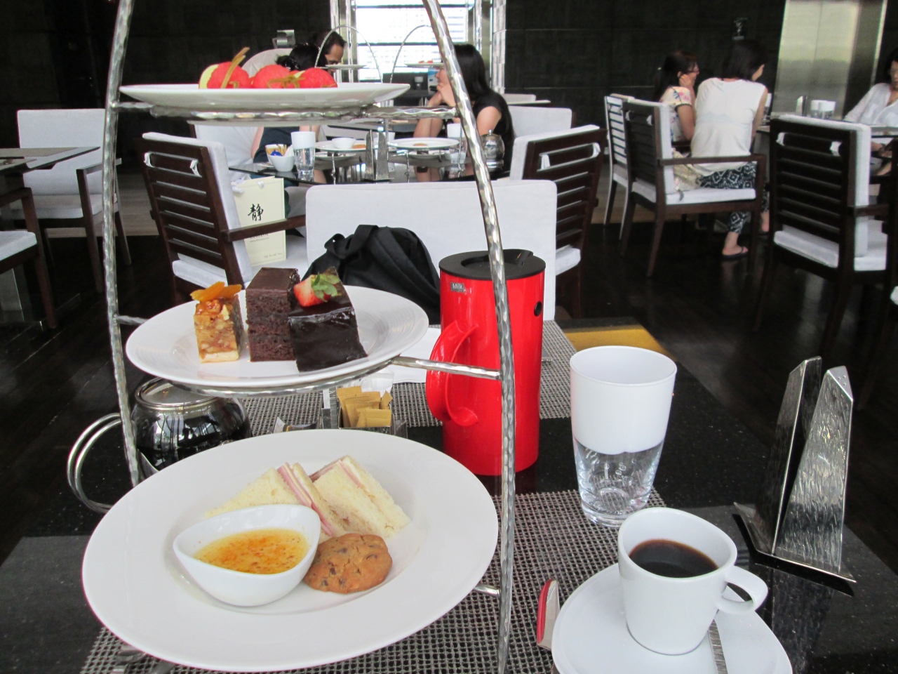 1階にあるエステ・スパ店「静」でスパのコースを利用すると、このホテルの8階にあるレストランで食べれるティーセットが食べれます。英国式のようなトレイに乗ったアフタヌーンティーセットが運ばれてきて、ゆっくりと食事ができました。