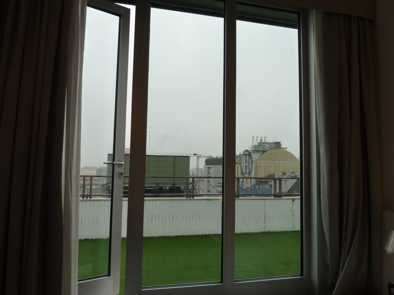 ロビーはインテリアがオシャレな感じですが、部屋の前や廊下の雰囲気はまるでクラブのよう。落ち着いた感じではありません。テラスがついてましたが、見える景色はビルの側面・・しかも横の部屋とつながっているのでセキュリティ面でも少し不安でした。