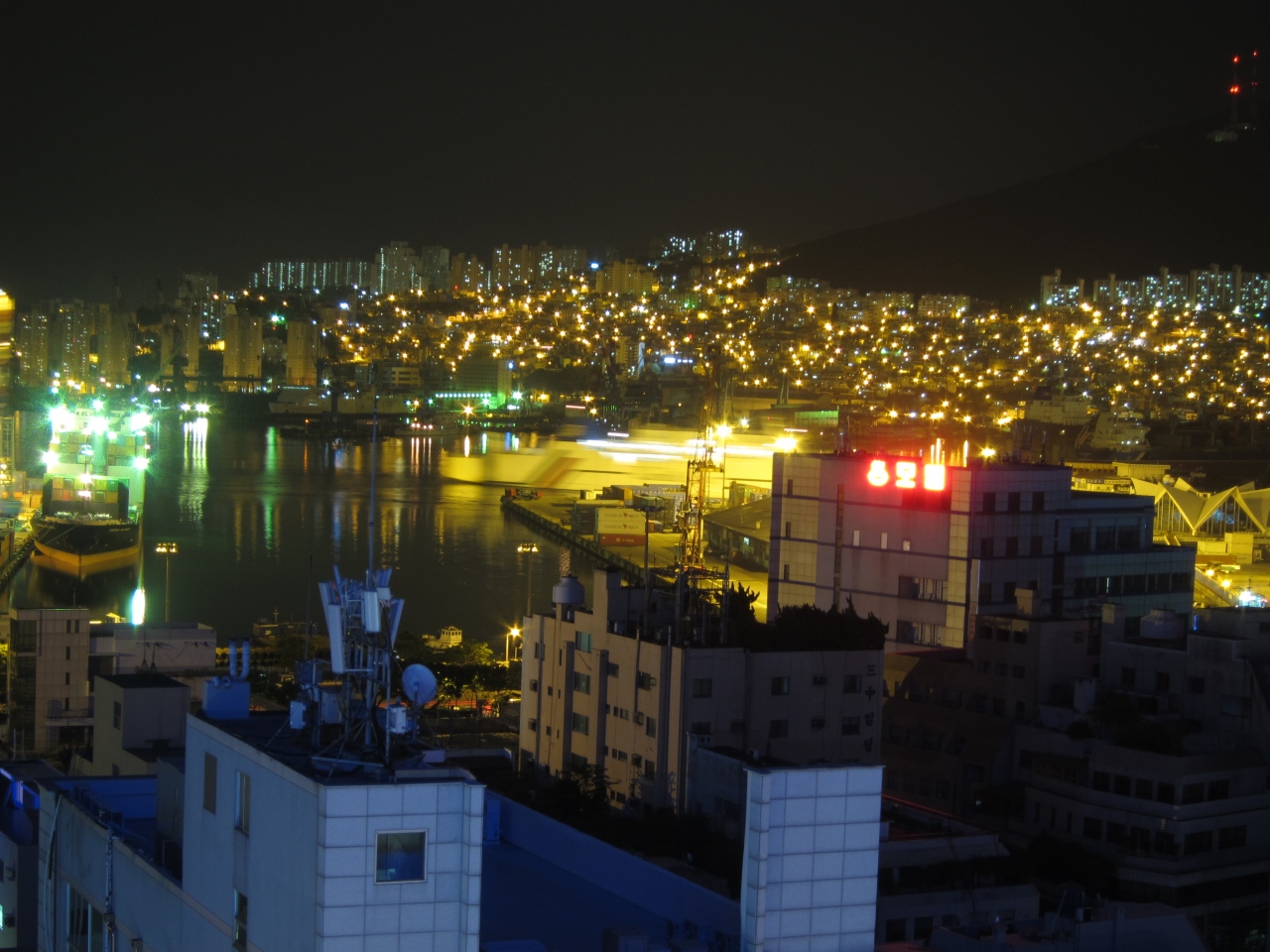 部屋の窓から見える景色が良く、釜山港を眺められること。