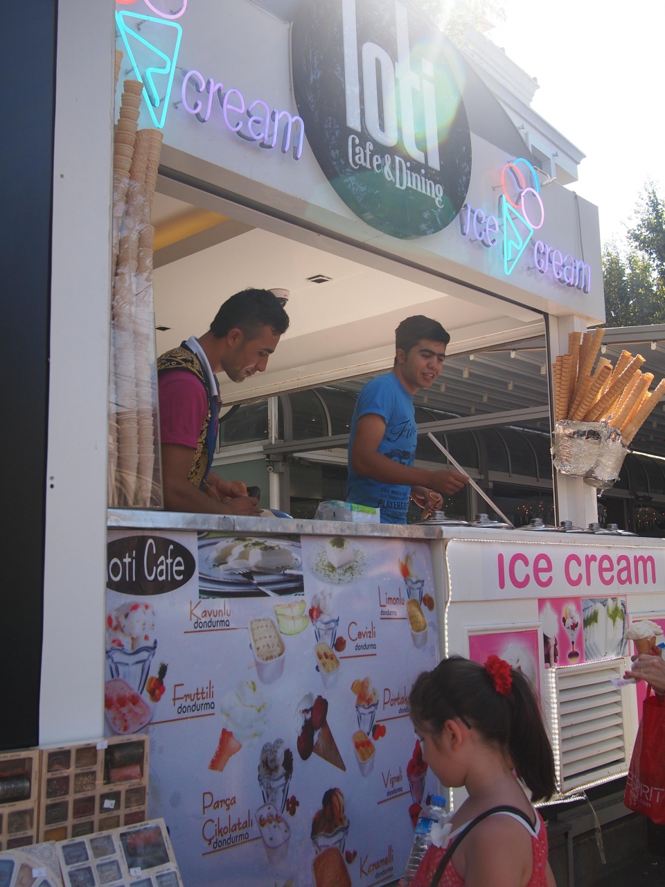スルタンアフメット駅近くの、トラム通り沿いにあるピエールロティホテルに併設されている、loti cafe & restaurantのアイスクリーム売り場で、トルコアイスを購入しました。