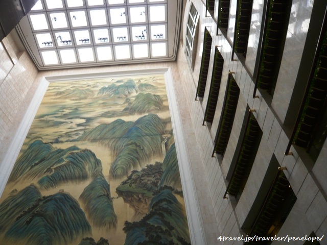 エレベーターホールにある、16階分の壁を使った山水画は迫力あります。