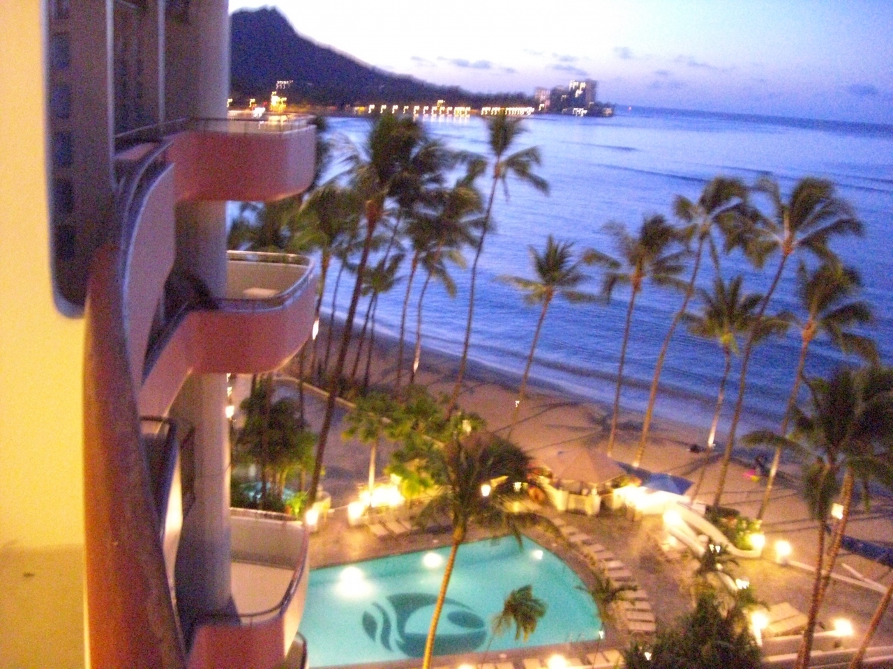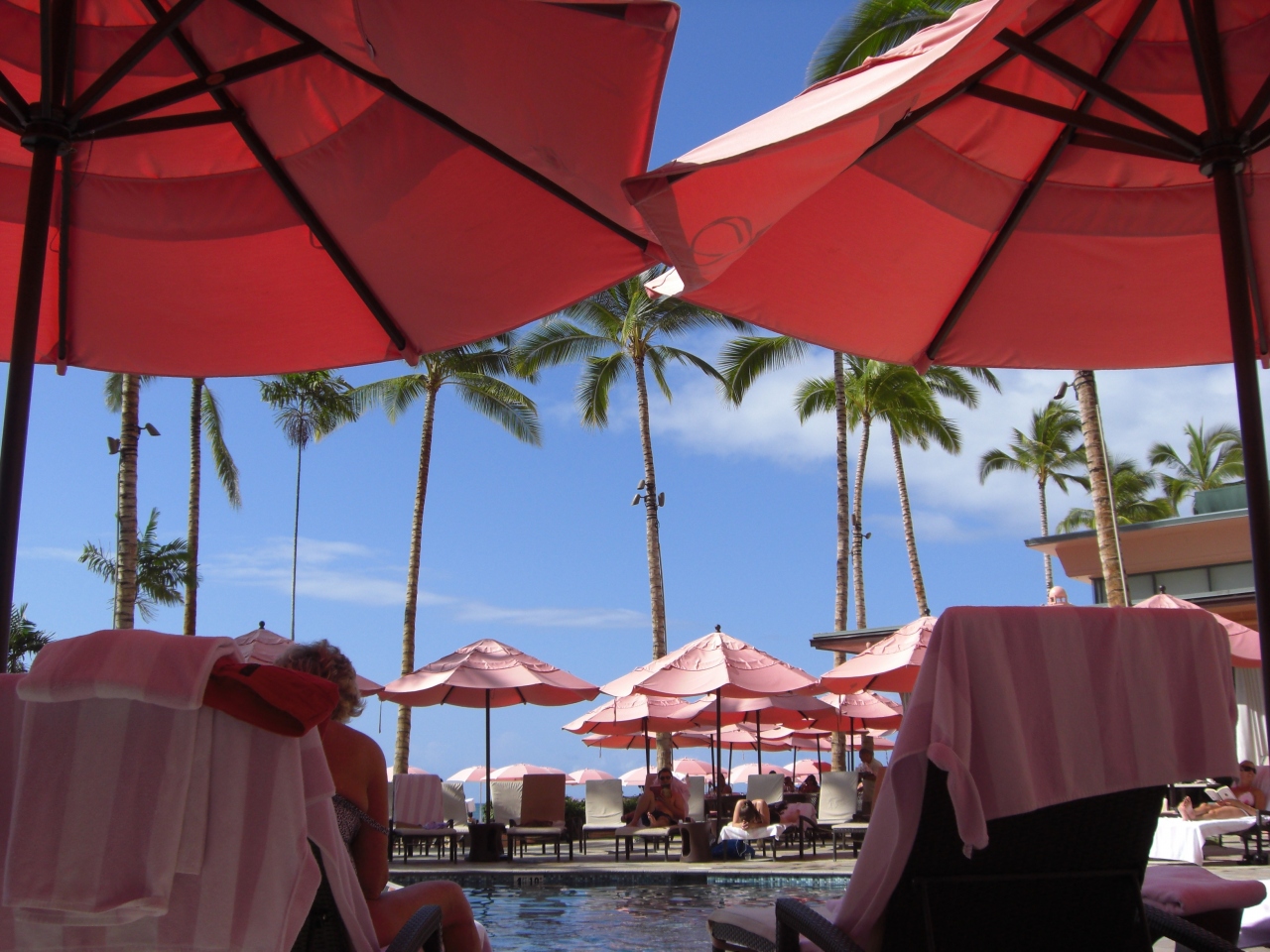以前から気になっていたピンクパレスに思い切って泊まりました。せっかくのオンザビーチなのでタワー棟オーシャンフロントをリクエスト。アサインされた部屋は5Fで目の前はオーシャンフロントではあるが、ヤシの木が中央にあり邪魔してたので部屋を替えて貰うようにお願いしたら今度は7Fの部屋で、ラナイからの景色は目の前がワイキキの海・左がダイヤモンドヘッドが見え満足しました。フロントの対応も良く、最終日にレストランを予約しましたが、笑顔で対応してくれ満足しました。丁度、ホテルの歴史探索ツアーをやっていたので参加しました。英語だけの説明だったので内容は詳細まではわからなかったのですが雰囲気で伝わりました。また、月曜夜だけ行われるルアルーショーをみたり、プールサイドのチェアーで読書したりしてリラックスできました。非日常を満喫できる上質のホテルです。