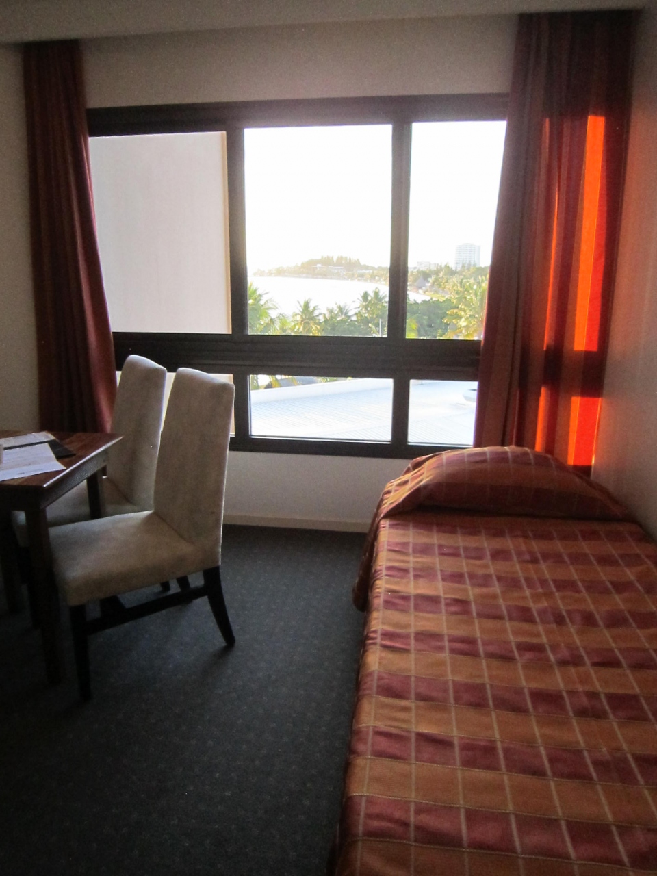 ホテルは古いですが広さは十分あり、簡単なキッチン、電子レンジ、食器やカトラリー、冷蔵庫もあります。