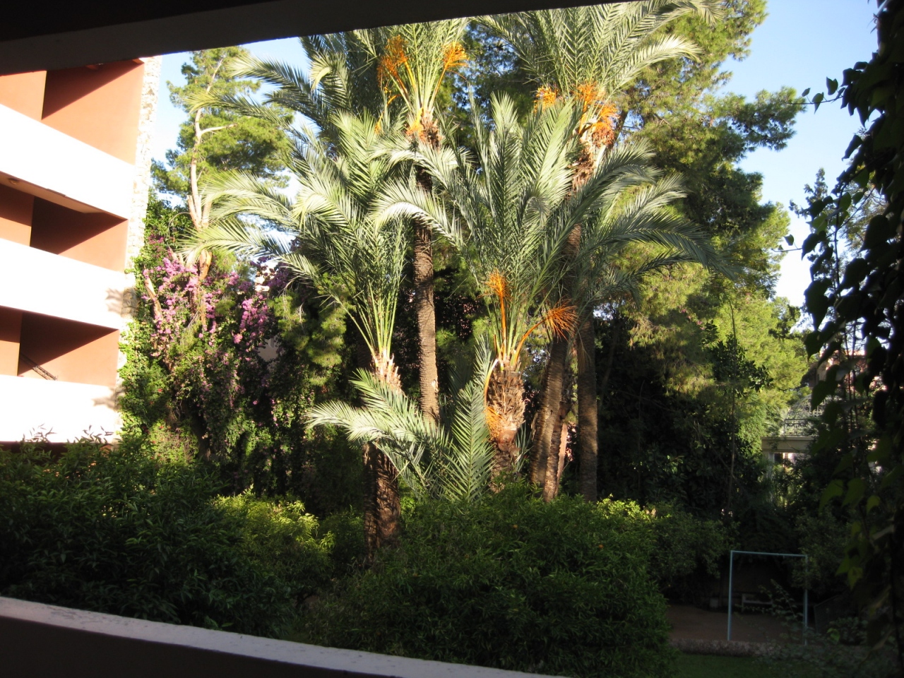 プールが望める中庭と、ナツメ椰子などが生茂る庭園を望める中庭があった。