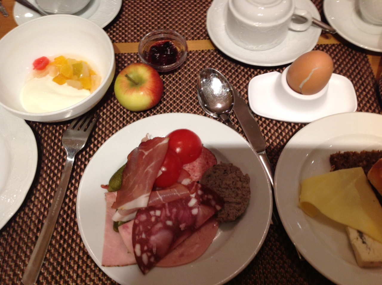 ミュウヘン中央駅から徒歩で5分程度なので、雪道で重たい旅行カバンを引きずってでも行ける距離にあります。ホテルの内装は木造なので、田舎のロッジに来たような温かな雰囲気があります。朝食はブッフェ形式で、品数も豊富です。部屋がなかなか暖まらず、暖房の効きがやや悪かったように思います。ドイツの一般のお店は夜は営業していませんが、駅中のお店だけは夜遅くまで営業していますので、コンビニ代わり便利に使うことができます。