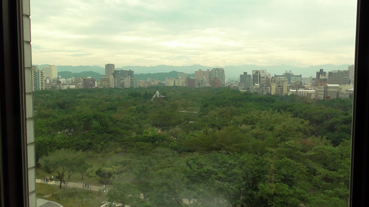 なんと言っても、広い窓からの森林公園の緑が一番のうりです。