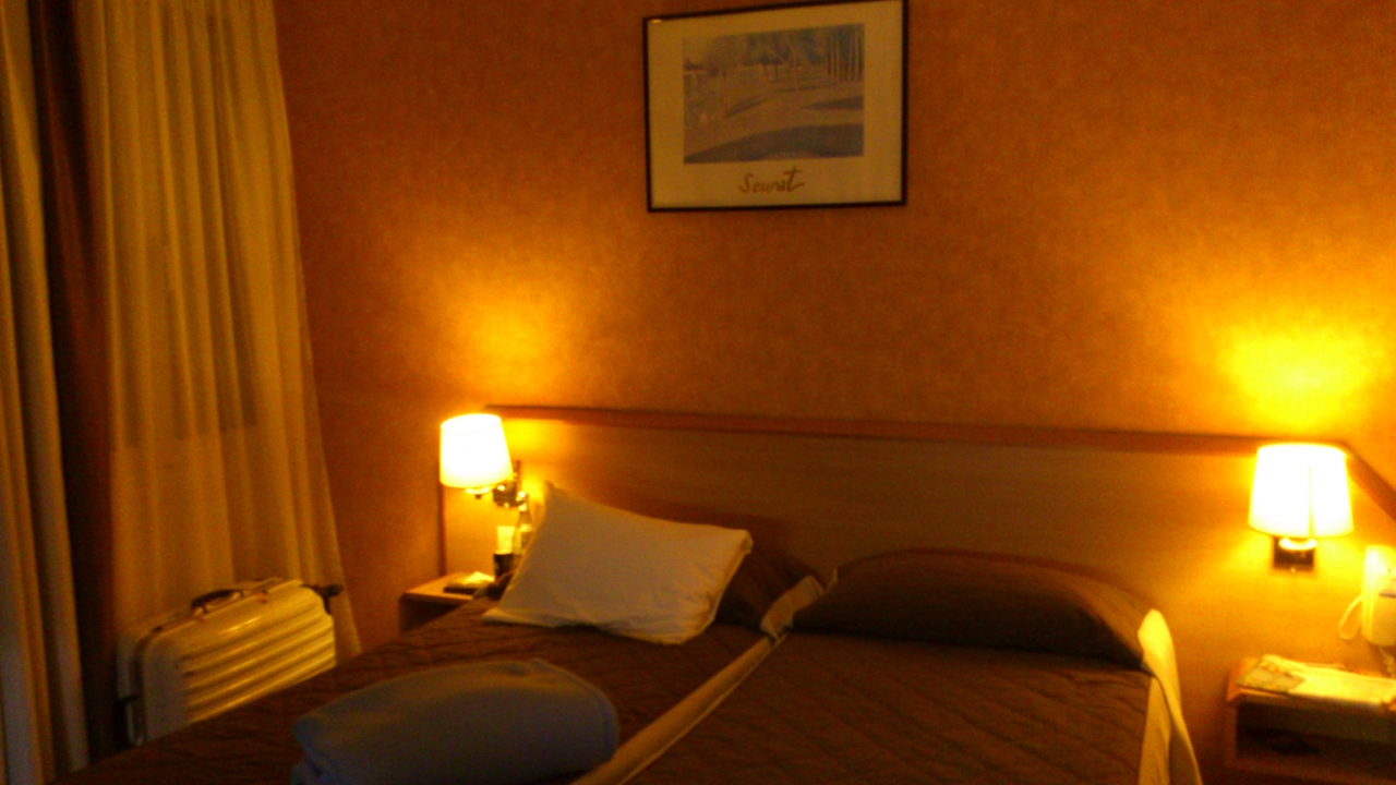 航空券とホテルのセットプラン。ホテルの選択はできませんでした。一泊料金も不明。治安の悪い地域との情報でしたので不安でしたが、メトロの駅にもすぐ、バス停はもっと近くにあり、ノートルダムにも、ルーブルもバス一本で行くことができて、夜遅い帰りでも大丈夫でした。