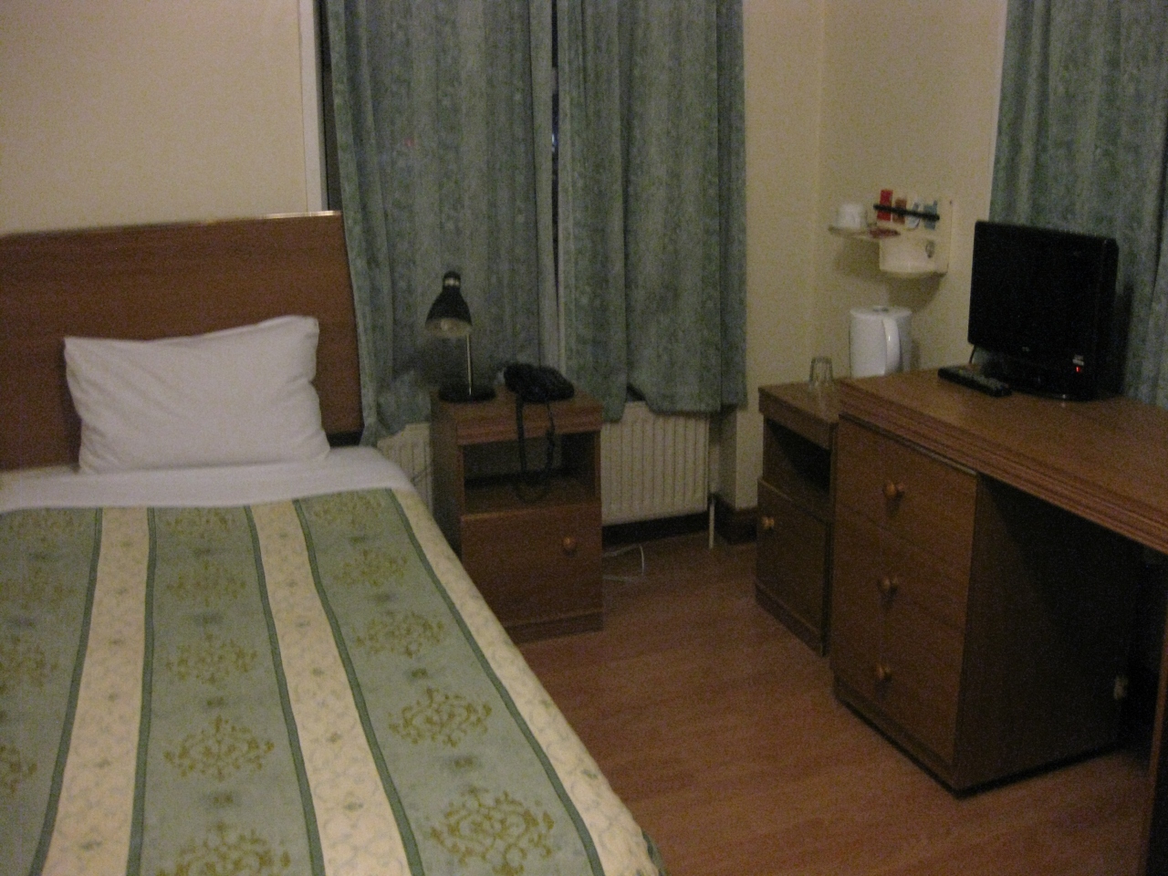 パリに向かうユーロスターの始発駅であるセントパンクラス駅から徒歩3~4分くらいのところにあるホテルです。ロンドンオリンピックが終わって1週間後の時期に行き、1人1泊65ポンドでした。客室はかなり狭いですが、場所柄仕方がないと思います。イングリッシュブレックファストスタイルの朝食が付いていました。便利な立地にある反面、道路の騒音も深夜でも激しく、神経質な方は眠れないかもしれませんので、神経質な方は別の地区のホテルがいいと思います。