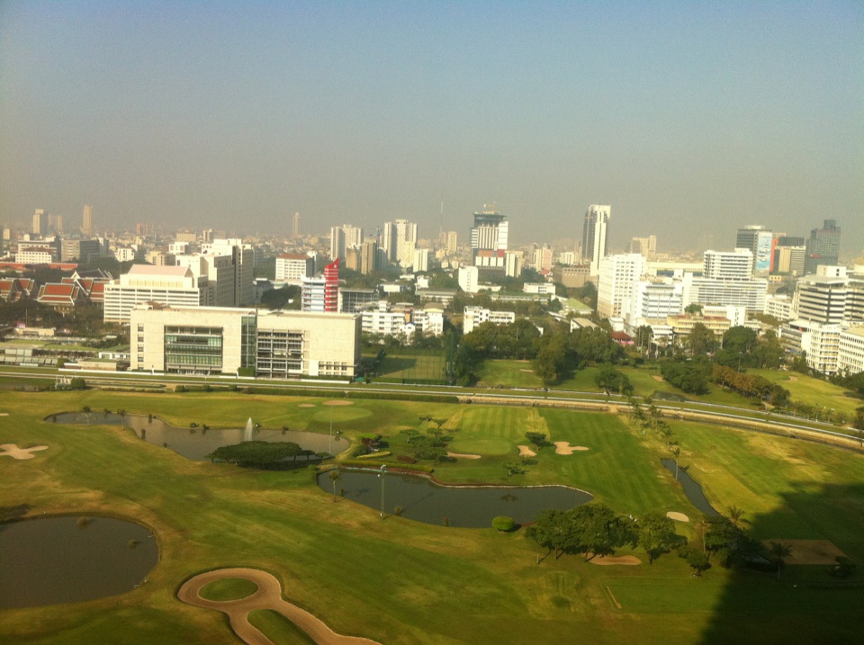 客室はBTSラインに面する側であれば、競馬場とゴルフ場を兼ねた緑の景色が大きく広がり、とても気持ちがいい朝が過ごせる。