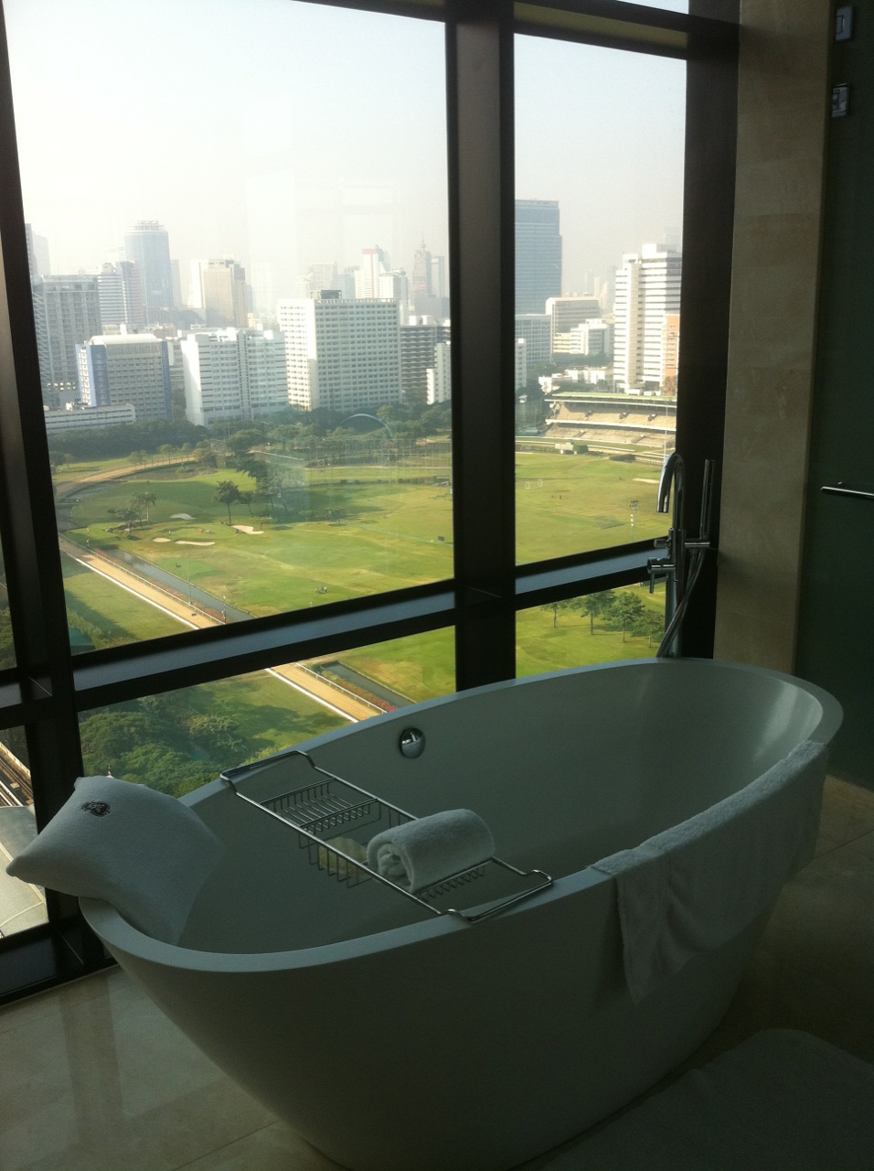 バスタブは深い卵型で、バンコクの他のホテルで感じた湯の遅さも気にならなかった。