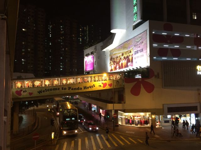 地下鉄チュン湾駅までなら、3階のフロントロビーから屋根付き、段差なく行けるし、始発駅なので、必ず座れるのがいい(徒歩10分)急ぎで荷物が無いなら、大窩口駅が近い(徒歩7分とダウンタウンまで1駅分の時間節約)。部屋はややくたびれた感じだが、特段不潔という程では無い。廊下がややカビ臭いかも。3階ロビー前から1時間に1本ダウンタウンまでシャトルバスサービスがあるが、往復とも予約制なので、時間に余裕がある人向けか?実際モンコックから渋滞して、イライラしたので、MTRをお薦めしたい。ディズニーランドなら、北西側の道を渡ってやや左に行ったところの「仁済医院」バス停から409番のミニバス(オクトパス利用可6分間隔)で4駅の「青衣城」でMTR東涌線(12分間隔)に乗り、1駅で欣澳駅でディズニーリゾートラインに乗り換えて行けば、ゲートまで30分。帰りは青衣駅の一番西端から出て道を渡ったところに409のバス停があり、パンダホテル(悦来酒店)の戸口まで行ってくれる(往きの場合はここからだと遠回りしてから仁済医院を通過するので仁済医院から乗る)。ミニバスは車内に停車駅の表示が無いので、前の方に座って運転手さんに行き先を告げた方が安心です(紙で漢字を書き示すといい)。空港からはA31だと安いのですが、大窩口駅前から7分程歩かないといけないので、歩きたくないなら、A番台のどのバスでも(A31(18HKD)<A41(21HKD)<A21(33HKD)<A22(39HKD)<A11(40HKD)<A12(45HKD)なので、A31かA41をお薦め、香港のバスは乗った時点で終点までの全料金を徴収するシステムです)、空港から1駅の青馬収費廣場(Lantau toll link plaza、空港から走り出したらすぐに降車ベルを音が鳴り、前の赤いランプがつくまで強く押してください)でE31 (10.8HKD、15分間隔)に乗り継げば、ホテル前まで行けます。帰りはホテルの北東沿いの道路を数十メートル南へ行ったところの一番端にE31のバス停(チュン富街花園)があります。乗継いでも30ドルから55ドル程で、空港快線とタクシー乗るより安いし歩きは少ないです。ディズニーランドに行くとき青衣駅で結構歩くので、全く歩きたくない人はここからE31に乗って、さっきの青馬収費廣場でR8(20分間隔)に乗り換えれば乗継ぎ割引込み(要オクトパスカード)で11.8HKD(30~50分)で行けます。