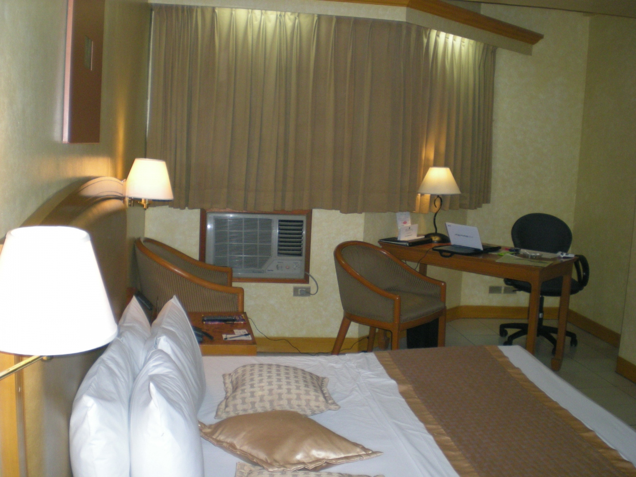 部屋のPC用のテーブル、椅子は快適だった。wifiも良好。タイル貼り。冷蔵庫はあるが飲み物が一杯で持参の物を入れるのに苦労するのは前回同様。ガードマンなどはエグゼクティブよりもしっかりしている感じがする。