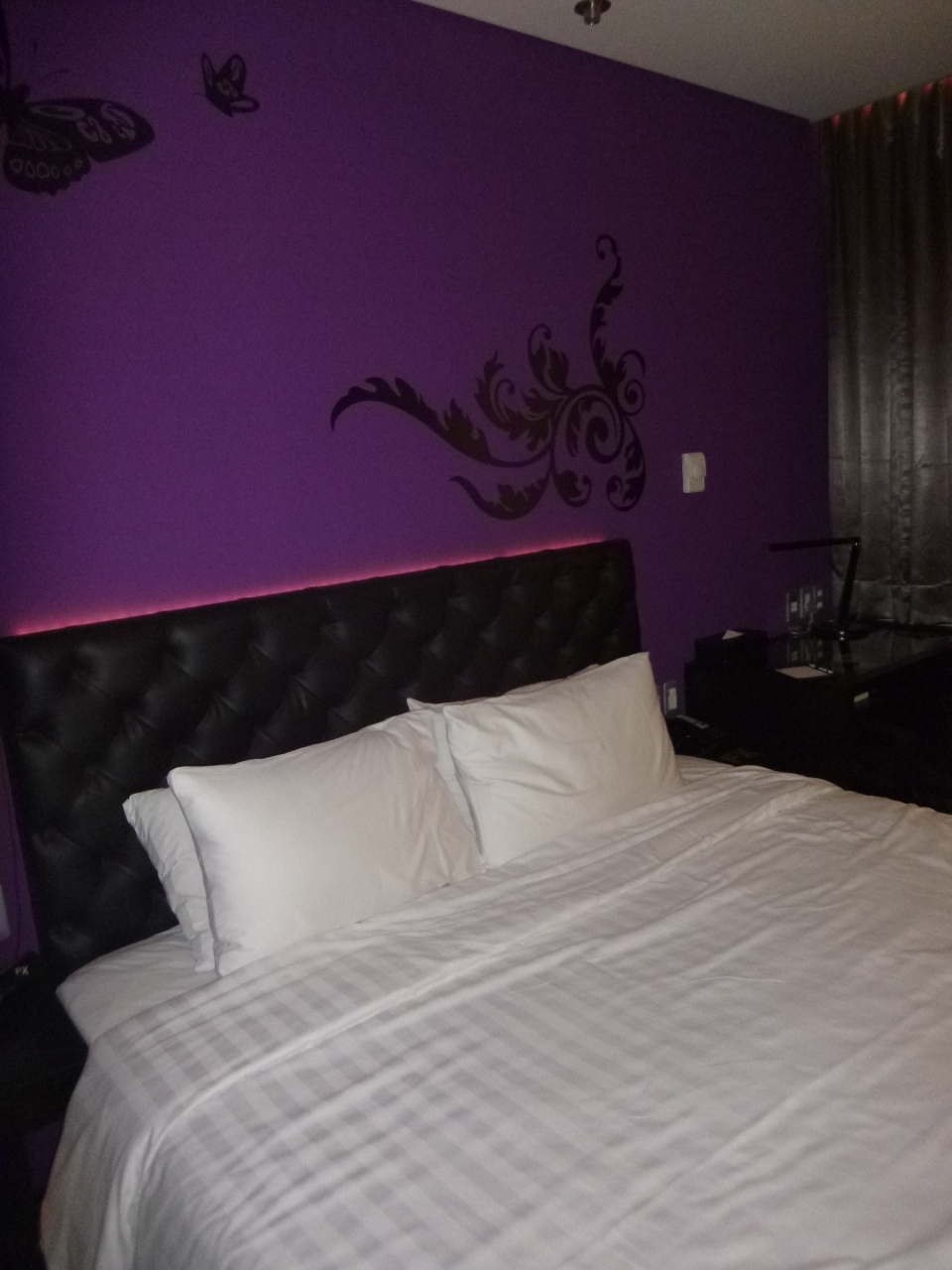 2011年にできたばかりということで、どうなんだろうと思いましたがホテル自体は綺麗でした。ただ、紫色を基調としたモダンなデザインのホテルで少し落ち着かない感じ。