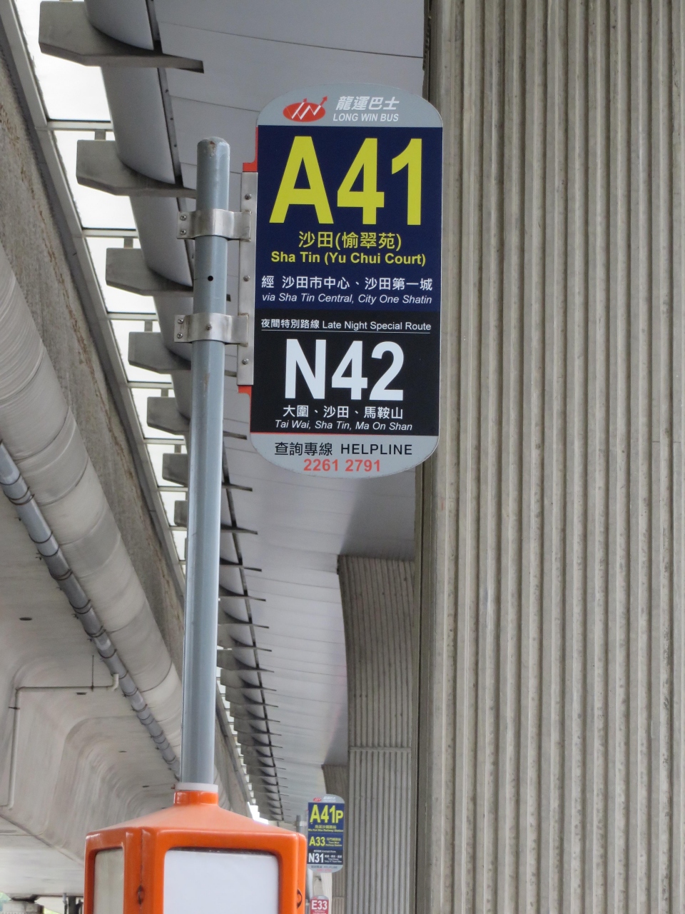 「沙田市中心」行きの表示もバス停に出ていました。