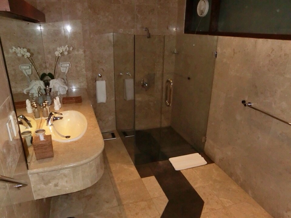 まだ新しいホテルでとても綺麗。像が見える部屋とは思ってなかったので、室内テラスからの眺め(目の前に象がいつもいます♪)で、テンションが上がります。室内も日本語の挨拶文もあり、荷物を運んでくれたポーターさんもにこやかでした。ベッドの足や折り紙・タオルで象を作ったり象ったりしてあるのにも感激!バスルームは数段下がった設計の部屋の奥。体重計や歯ブラシまで置いてある豊富なアメニティーでした。熱いお湯がいつでもしっかり出ました。ベッドの硬さもちょうど良く寝やすかった。リネン類もふかふかで気持ち良かったです。夕飯時に象が部屋まで迎えに来たり、朝はブラシで洗ってあげるだけかと思えば一緒に池に入ることも出来るので、水着を着ていった方がいいですよ。レストランのブッフェは不味かったのですが、朝食は品数は少ないですが美味しかったです。そこからも象が見えますよ。Wi-Fiは個人的にパスワードをくれますが、客室での入りは悪かったです。半日からのツアーもあるようですが、一泊すると楽しさ倍増です。空港から直にきたのですが、とにかく遠い・・・飛行機が揺れたのもあるのかもしれないですが、山道は乗り物酔いのある方には辛いです。近くにコンビニなどないので、白人家族などは大量にスナックなどを持ち込んでいましたよ。