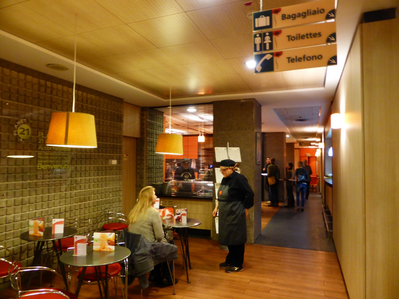 小腹がすいたのでホテルの周りに飲食店かスーパーを探しましたが見当たらず、ホテル内のレストランも閉まっていて残念でした。部屋、ベッドはやや狭めでシャワーブースはバスタブがあり長いフライトの疲れを取る事が出来ました。朝食の種類はハム、チーズ、卵、ヨーグルトとイタリアのホテルの中では豊富な方です。ツアーの初日、泊まるだけなら十分のホテルです。