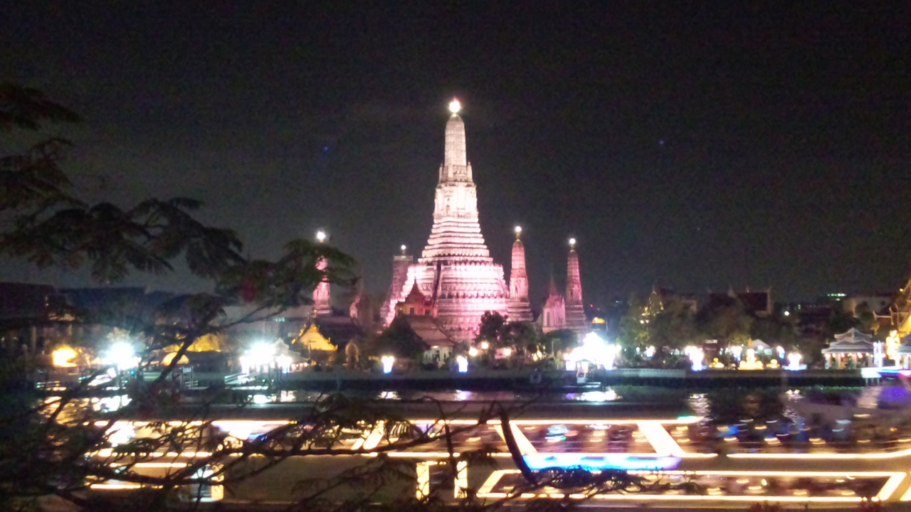 部屋からワットアルンのライトアップをずっと眺めることのできるホテルです。