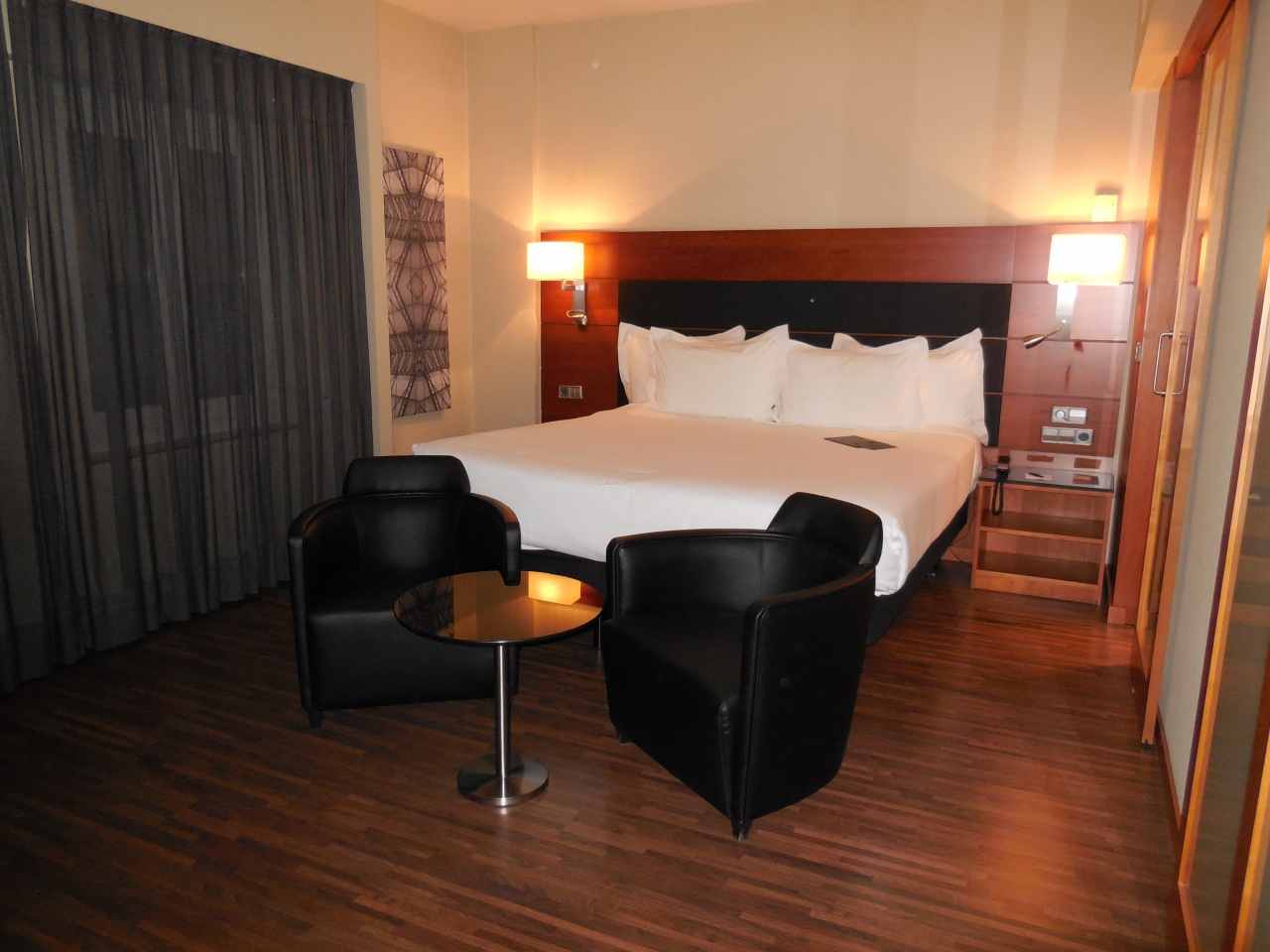 マドリッド・バラハス空港に着いたのが20:30頃。それからタクシーでホテルに向かいました。料金は35ユーロ程度だったと記憶しています。翌日は9:05の列車でグラナダに向かう予定でしたので、ホテルの滞在時間が短いため、この日の宿泊はスタンダードにしました。スタンダードの部屋は2名で泊まるには少々手狭で、バスルームもシャワーだけで非常に狭かったです。