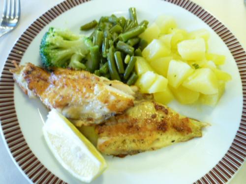 @メインはお魚のグリル:ジュージーで美味しく、また、付け合わせもいけてる。
