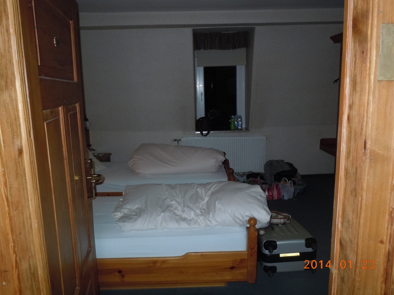 部屋は木質のロッジ風でシングルベッド2台がやっと、洗面台が室内に有りかなり狭い。