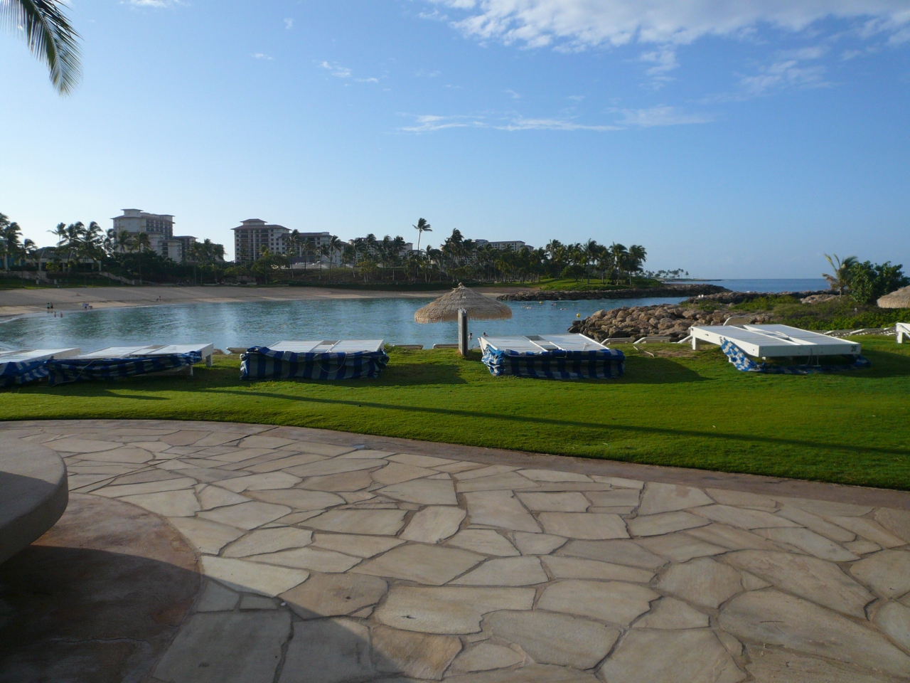マリオットアジアパシフィックのポイントを使い、5泊しました。お部屋は2ベットルームにキッチンリビングがついており、家族4人にはもったいないくらいの広さでした。マウンテンビューと言う事で少々心配しておりましたが、目の前には広ーいゴルフ場が広がり、とても気持ちの良い眺め。夜には静かでプライベート感を感じられ、とても良かったです。ハワイと言えば海ですが、ゆったり滞在にマウンテンビューもおすすめです。