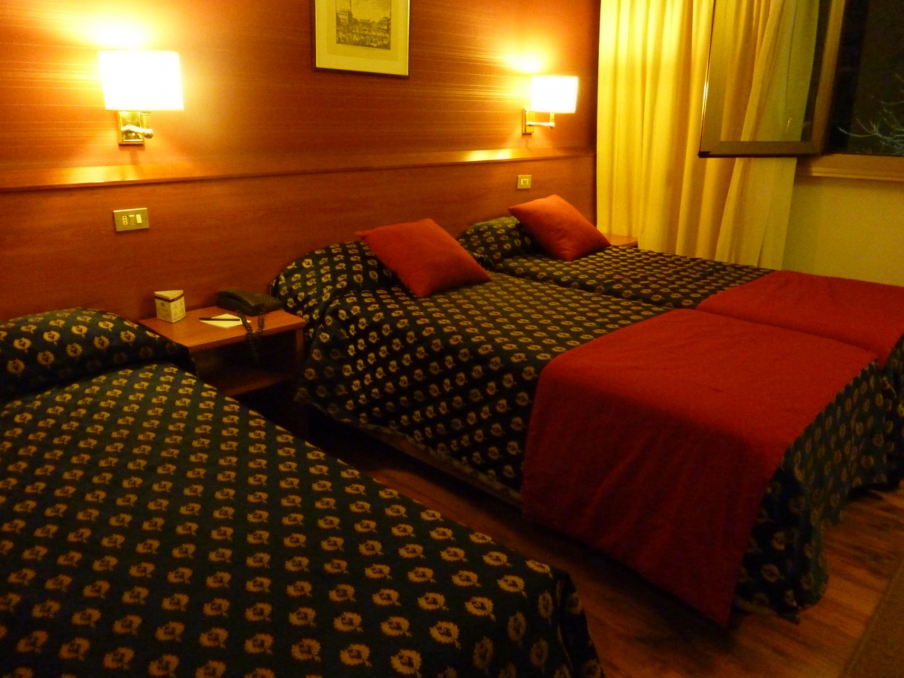 宿泊した部屋は通りに面した部屋で、シングルベッドが3台置かれ、クローゼットの他に荷物置き場をかねたチェストまであり、問題なく2つのスーツケースを広げられた。窓が全開できるので空気を入れかえられたのもよかった。