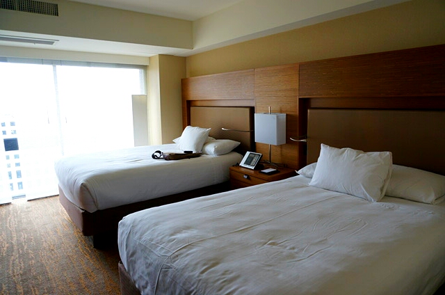 公共の移動手段を利用する予定で駅やバス停にも近く、夜遅く帰ってきても安心な場所ということで選んだのですが大正解でした。目の前にはスターバックスが、ワンブロック先には24時間開いているスーパーもありよく利用しました。街中なのでもちろんある程度の騒音はありますがそこまで神経質になることもありませんでした。エレベーターの数も多くスピードも速かったので待つことはありませんでした。室内のアメニティーが最小限だと言う情報を前もって得ていたのですがエコを意識するこの時代に合っていて潔いと感じました。本当に必要なものは自分で絶対に持っていきますから。又利用したいホテルです。
