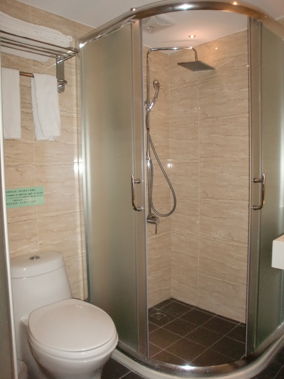 部屋はシンプルで綺麗ですが、ドアが薄くて下の方は隙間が開いているので隣室の声が煩く、部屋の外に見に行くと、向かい合わせの部屋同士、ドアを開けて大人数でわいわい会話していました。