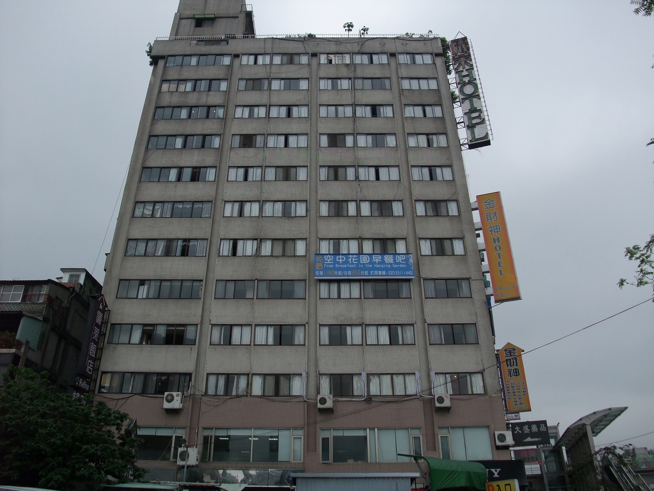 台北駅と西門駅との中間くらいにあります。どちらの駅にも歩いて15分程度です。深夜到着、早朝出発には空港行きのバスターミナル、台北国内移動にも台北駅に徒歩で15分、台北の原宿と言われる西門町からも徒歩圏内ですのでロケーションは良いと思います。最初はちょっとわかりにくいです。フロント、ロビーは中級クラスのホテルを感じさせる雰囲気です。あと各階のエレベーター横には各フロアーの面倒をしている管理部屋があり、時間によってはおばさんが横になって寝ています。部屋はこじんまりしたビジネスホテル、そしてとっても不思議な和室でベットが置いてあり、部屋の中に坪庭、部屋は広いのでグループには良いかもしれませんが、薄暗く、違和感があり2度とこの部屋だけは泊まりたくないです。他の部屋ならフロントの対応も含めて、ロケーションを考えると宿泊します。朝食は屋上で本当に簡単な食事なので、台湾にはおいしい朝食を食べるところが多いので外食をお勧めです。日本人もツアーで使われているようで非常に多いです。