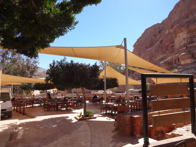 ヨルダンのぺトラ遺跡の中にある宿泊施設です。入口からは歩いて1時間くらいのところです。Basin Restaurantというレストランがあり、ここで昼食をとったり、休んだりする人も多いです。ツアーだとだいたいこのレストランで昼食が組まれていると思います。ビュッフェスタイルで、お料理数もまずまずありました。暑くなければ、外にテラス席もあり、ロケーションは良いです。