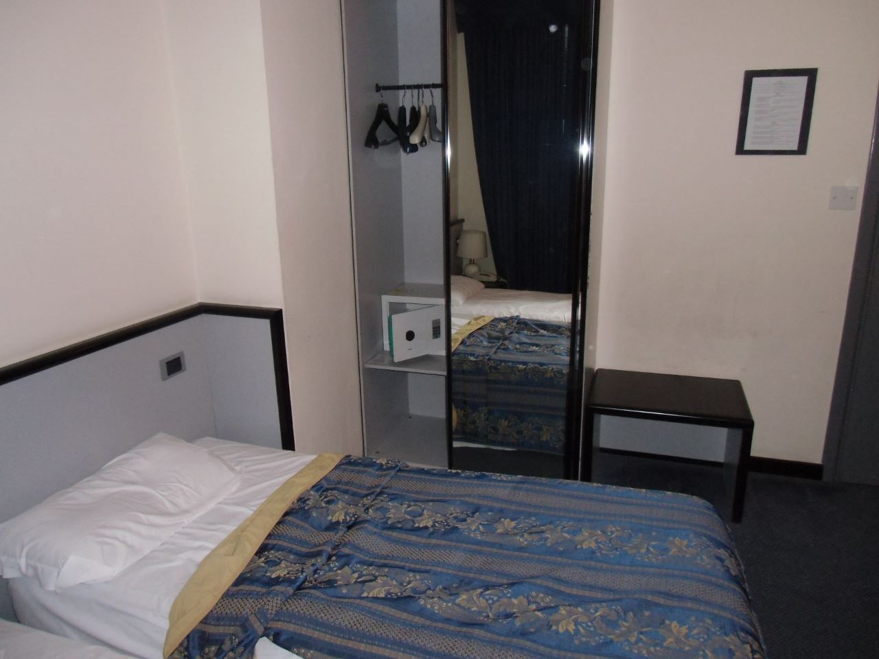 ミラノ観光でツインの部屋に2泊しました。ミラノ中央駅から数分なので、立地は抜群です。夜、外の騒音もそれほど気になりませんでした。フロントの方は英語が通じますし、チェックイン前に到着しましたが、快く部屋に案内してくれ、また交通やレストランのことも親切に教えてくれました。部屋は広くはありませんが、ベランダがあって、目の前にミラノ中央駅が見えました。部屋にはセーフティ・ボックス、冷蔵庫、液晶テレビもありました。ただ、セーフティ・ボックスのパスワード設定がややこしくて、少し戸惑いましたが、ホテルのスタッフが教えてくれました。バスルームには、シャワー付きのバスタブがありますが、シャワーカーテンがありませんでした。アメニティは石鹸とシャンプーぐらいなので、必要なものは持参しました。ヘアー・ドライヤーは備え付けのものがあります。無料の朝食は、温かいものはスクランブルエッグとベーコンぐらいで、あとはチーズにハム、缶詰のフルーツにヨーグルトなどです。パンの種類は少なかったのですが、パウンドケーキ類がたくさんありました。ミラノはホテル料金が高いので、このホテルは全体的にコストパフォーマンスが良い方だと思います。