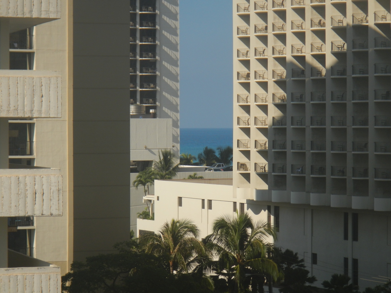 ワイキキの中心地(?)買い物スポットからは少し離れていますが、ビーチまではすぐ行けます。