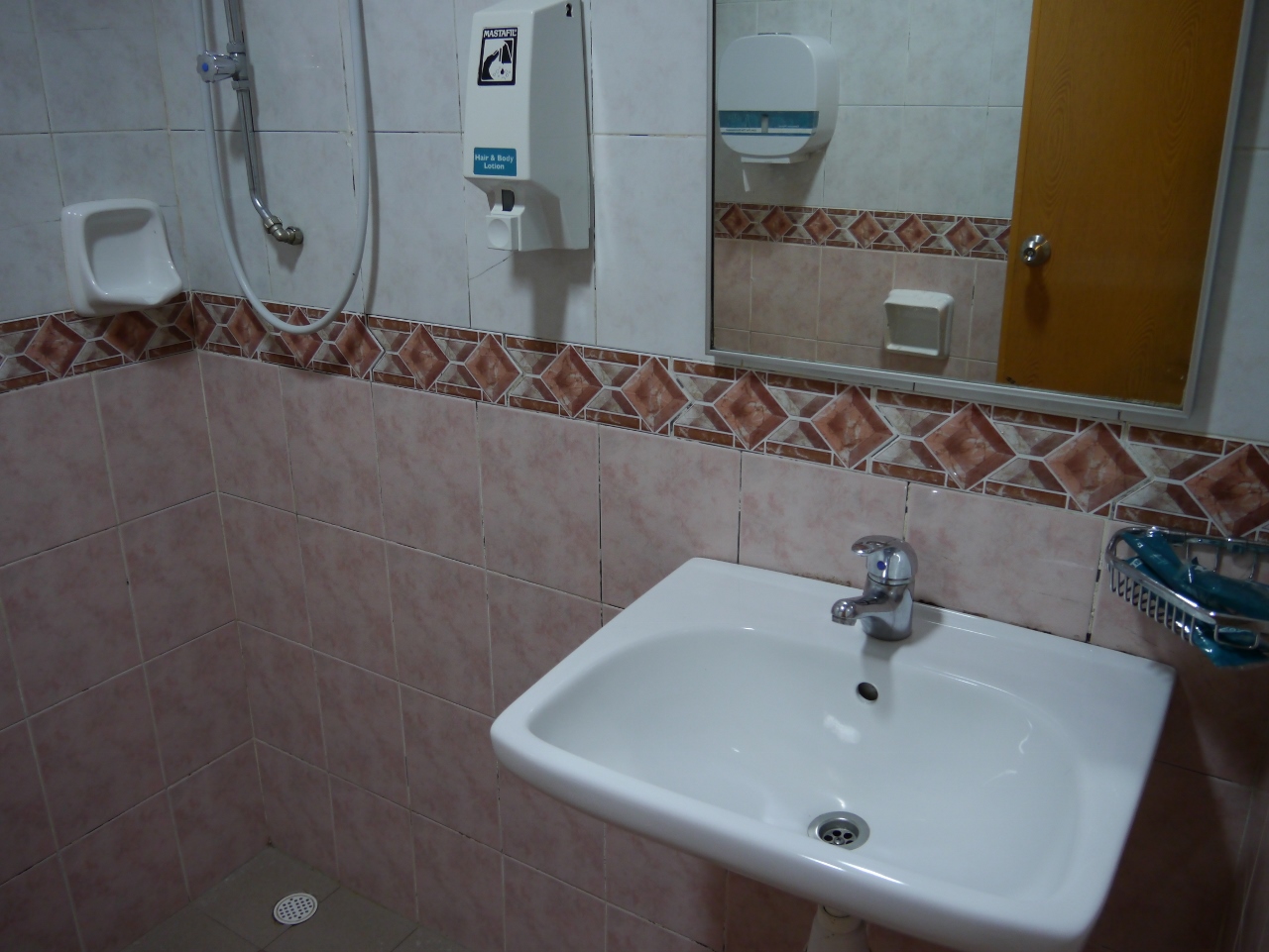 スタンダードダブルルームの広さは12平米ほどでスーツケースを広げるスペースはあります。ただしダブルベットが部屋を占拠しているため狭さを感じます。設備は大型TV、電気ケトル、デスク程度です。ボトル水のサービスはなく、ベッドは安い作りです。無料WiFiは問題なく繋がります。バスルームは大きくありませんが、必要十分な広さです。シャワーブースとトイレは床の段差で区切られているものの、カーテンがありません。シャワーの水が飛び散りトイレは濡れ、洗面台の床も濡れます。ボロボロのタオルで、バスルーム内は異臭がしたり、髪の毛が落ちていたりと清潔感は感じません。