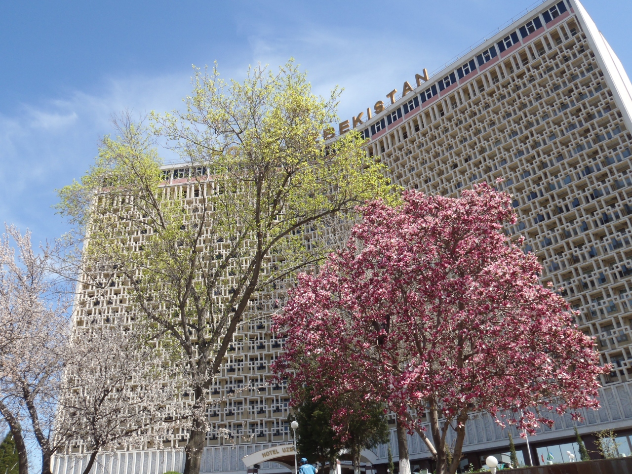 ウズベキスタンの首都タシケントの中心のティムール広場にそびえる立派なホテル。