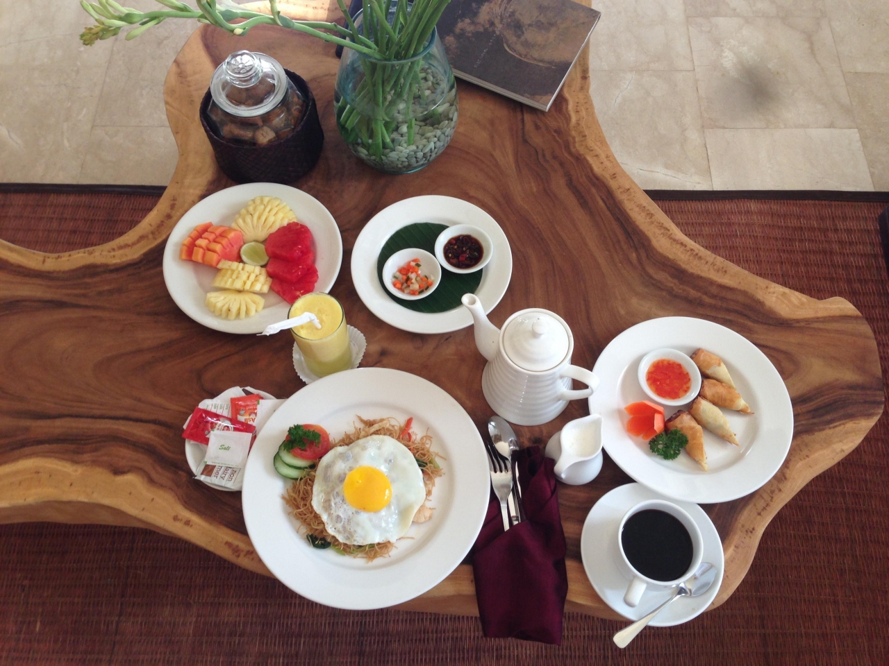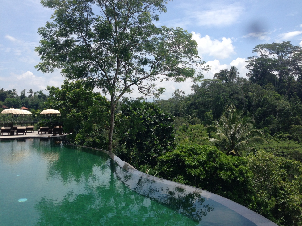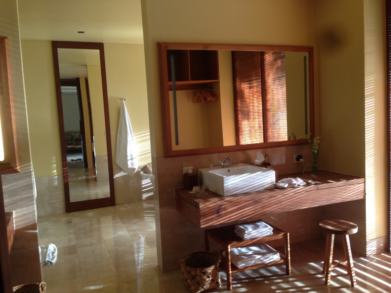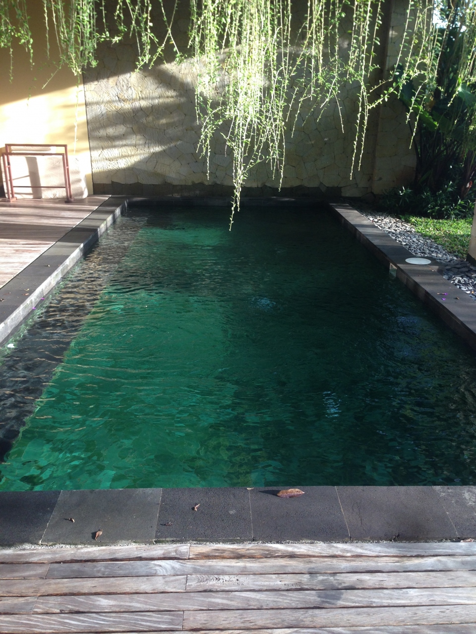 ホテルに着くと、フレンドリーなスタッフがお出迎えしてくれ、なんと、お部屋をプライベートプール付きのスイートルームにアップグレードしてくれました。そのお部屋は日本では考えられない様な広さで、プールも15メートルはあり、最高にのびのびできます。家具や調度品も本当にすばらしく、掃除も行き届いていて最高のお部屋で、何枚も写真をとってしまいました。