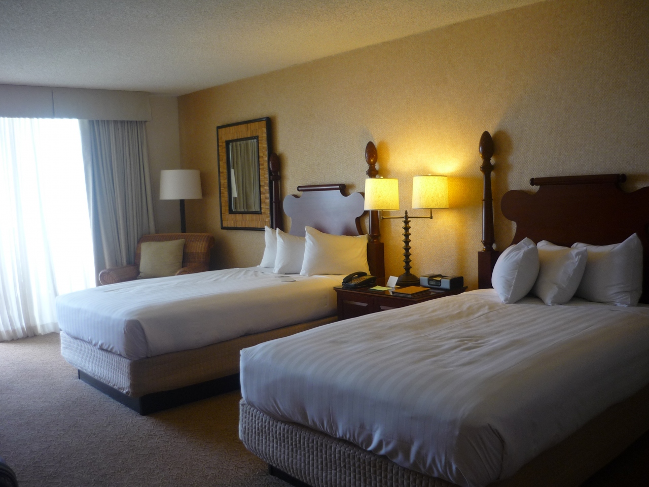 部屋は26階の西向きで、ビーチとワイキキの街並みが見下ろせます。かなりゆったりとしたつくりでベッドも大きかった(ダブルサイズ)です。備え付けのコーヒーメーカーでお湯が沸かせたので、これで紅茶を飲んでいました。