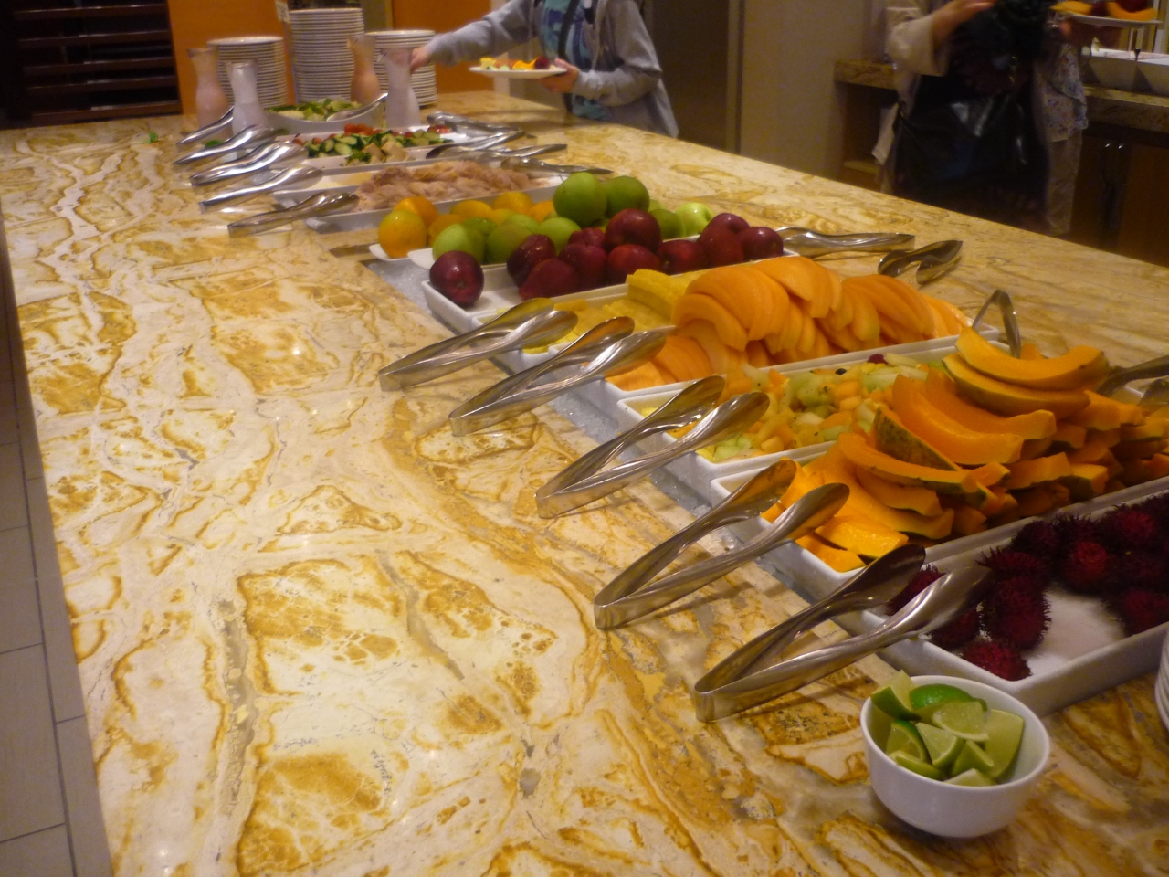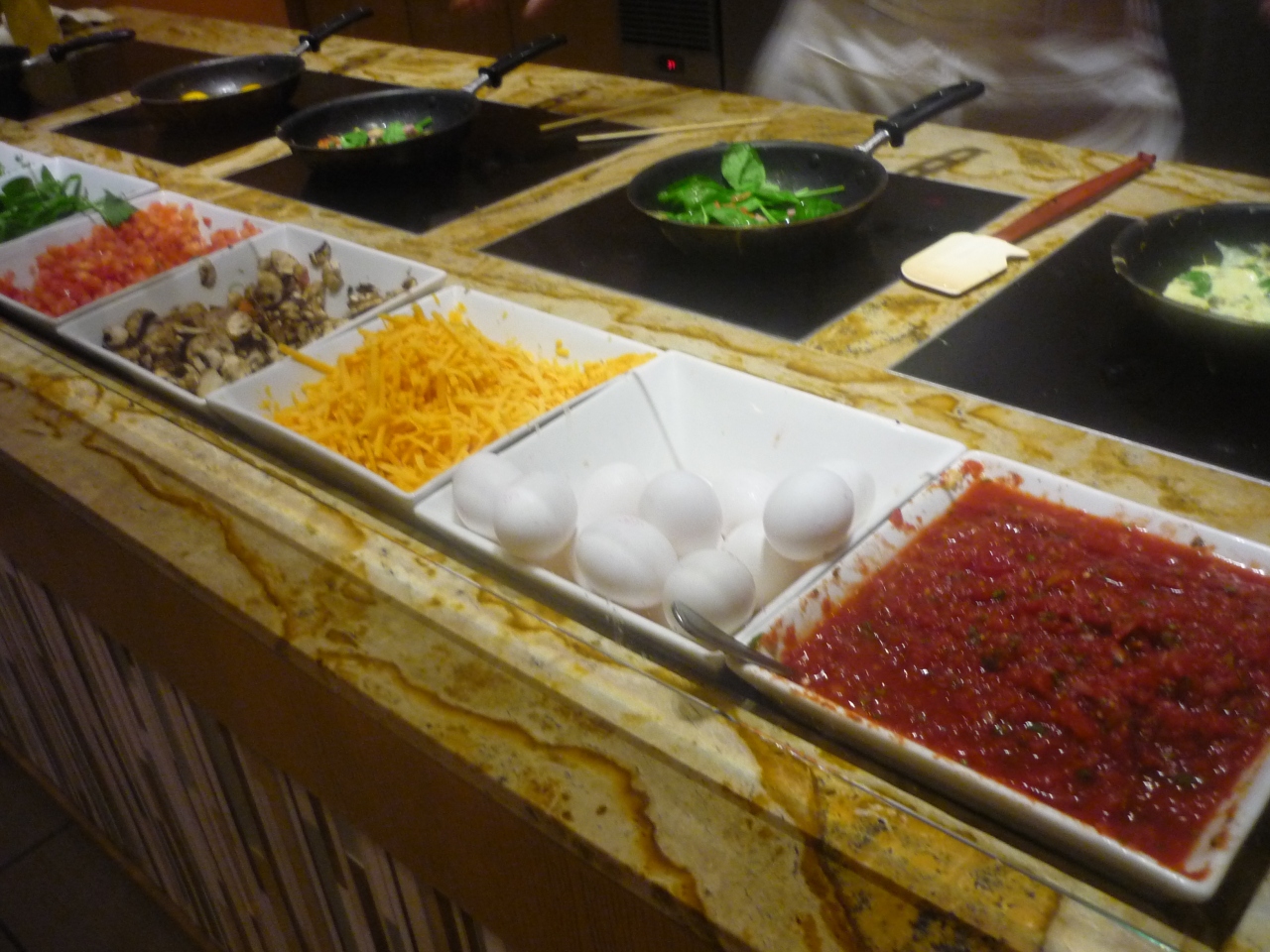 朝食は2階の「ショア」でビュッフェでした。フルーツの種類も多く、目の前で好きな具を入れて焼いてくれるオムレツや、デザートのパンプティングなどが美味しかったです。