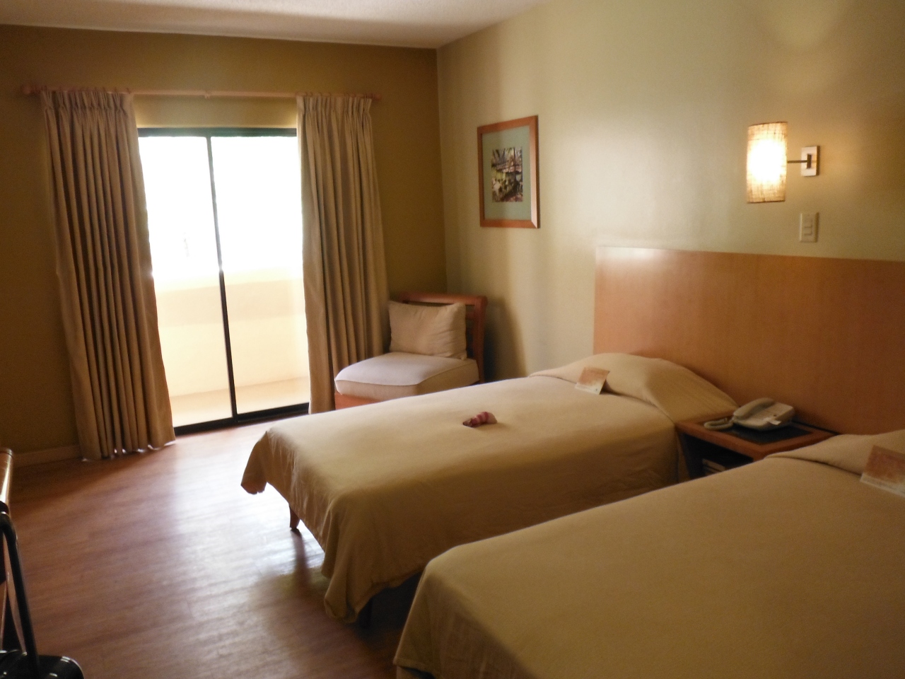 ホテルのランク付けはCグレードになっていましたがビーチまでも歩いて5分ほど、直結のお土産屋さんやマクドナルドがあるショッピングセンター、ホテル内にコンビニ・ツアーデスクもあり、DFSやハードロックカフェや服屋さんが入ったザ・プラザも交差点を渡ればすぐです。赤いシャトルバスのホテルから出てすぐです。