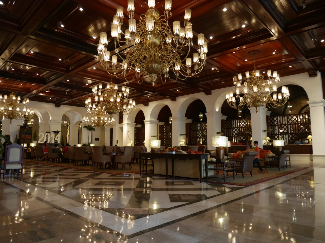 各国の要人が利用する、マニラを代表するホテルです。エントランスを一歩入れば豪華なシャンデリアが目に飛び込んで来る、広大なロビー。
