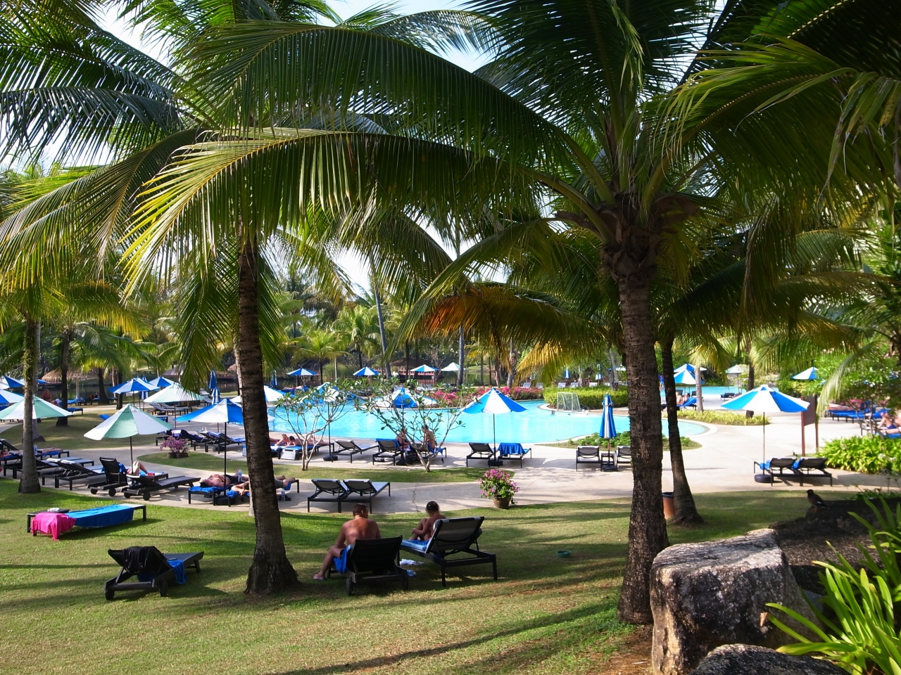ホテルの敷地の方がアンダマンビーチより少し高いので、ホテルのプールから海が見下ろせて、まるで海にいる気分でプール遊びができるのも良い点です。