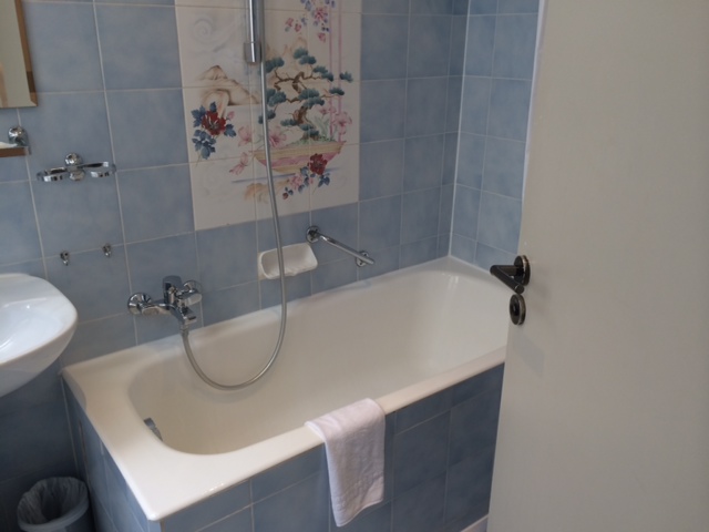 バスルームは可愛い感じで、シャワーも可動ですし、お湯もたっぷり出ました。
