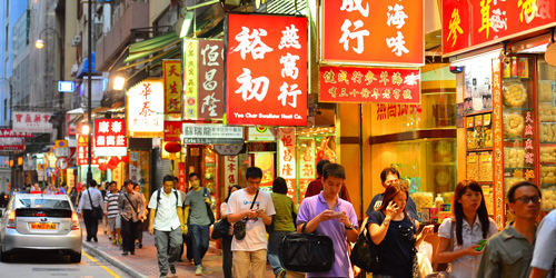 (海鮮乾物街を通り抜けます。昔ながらの香港が残る町並み)