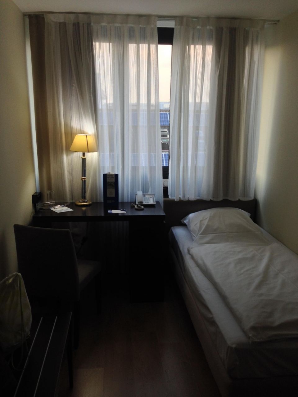 初めてのミュンヘン一人旅だったから、シングル(一人)で取れて、なるべく駅に近いところで選んだ。空港行きのバス停もすぐ近く。大きな駅の目の前でなんでも揃うところもGood。バスタブがないところは残念だが、シャワーは十分使える。朝食も付いているのも、よかった。